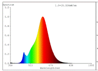 Spectral power distribution in the range 250 nm to 800 nm, at full-load