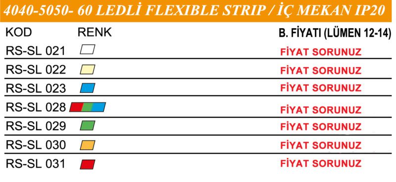 4040-5050-60 LEDLİ FILEXIBLE STRIP / İÇ MEKAN IP20