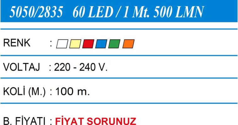 5050/2835 60 LED /1 MT. 500 LMN