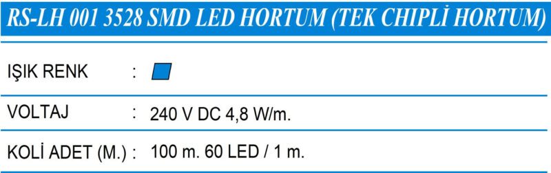 RS-LH 001 3528 SMD LED HORTUM (TEKCHİPLİ HORTUM)