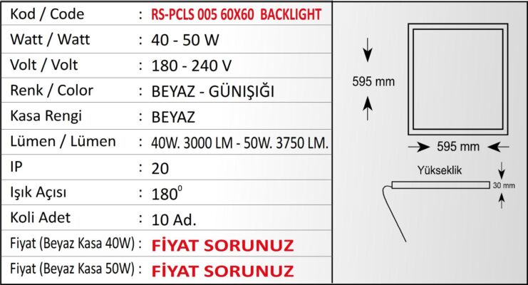 60X60 40-50W S.Ü. / S.A. Smd Led Panel