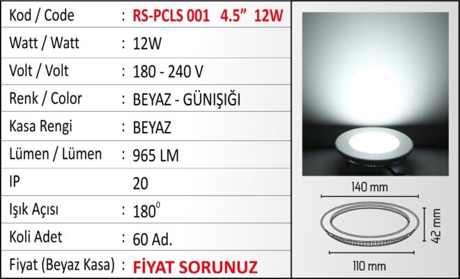 4,5″ 12W Sıva Altı Led Panel