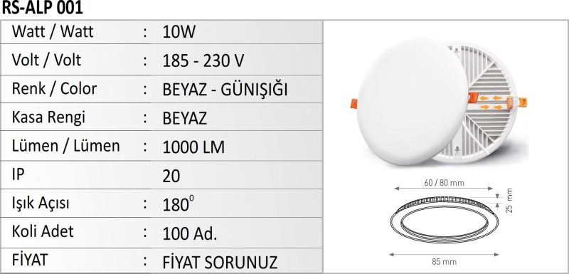 RS-ALP 001 AYARLANABİLİR LED PANEL