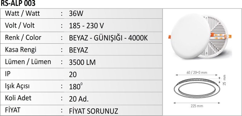 RS-ALP 003 AYARLANABİLİR LED PANEL